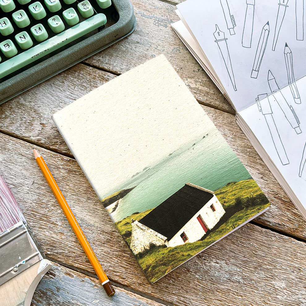 tape-bound, lay-flat, recycled, paperback notebook - printed & bound in togher, co. cork