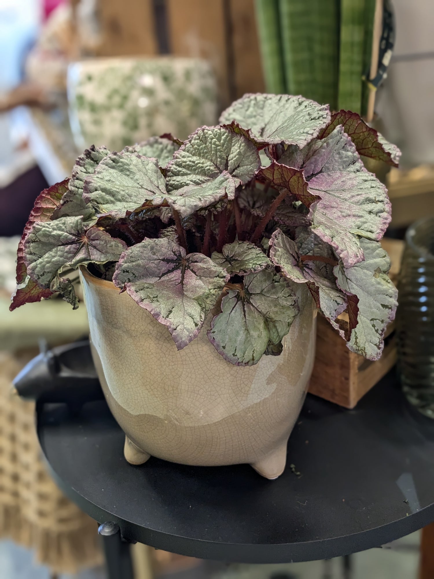 Begonia rex 'Hawaiian Silver' in ceramic pot.