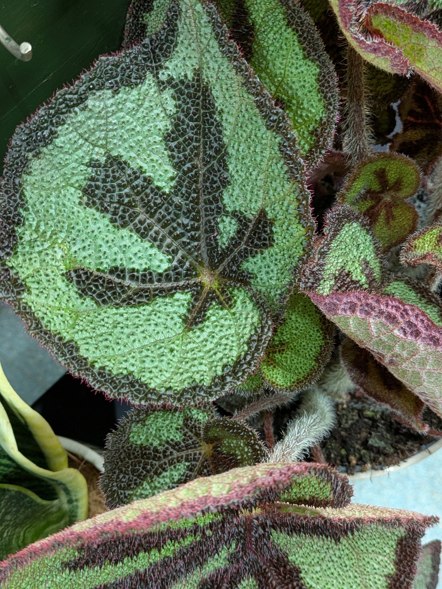 Plant maintenance: This plant requires bright, indirect light and should be kept out of direct sunlight. It also prefers a humid environment, so misting the leaves regularly can help it thrive. Begonias will not tolerate continuous direct sunlight or water logging.