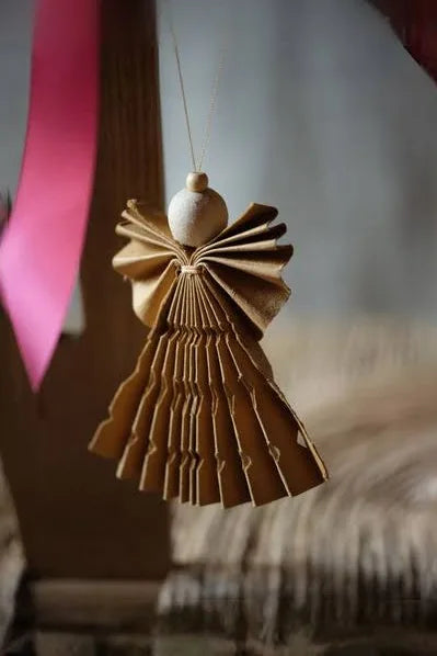 Hark the Maddox Angels sing! This trio of beautiful angel baubles is a contemporary take on a traditional angel ornament, with a warm cinnamon colour and striking concertina folded design.