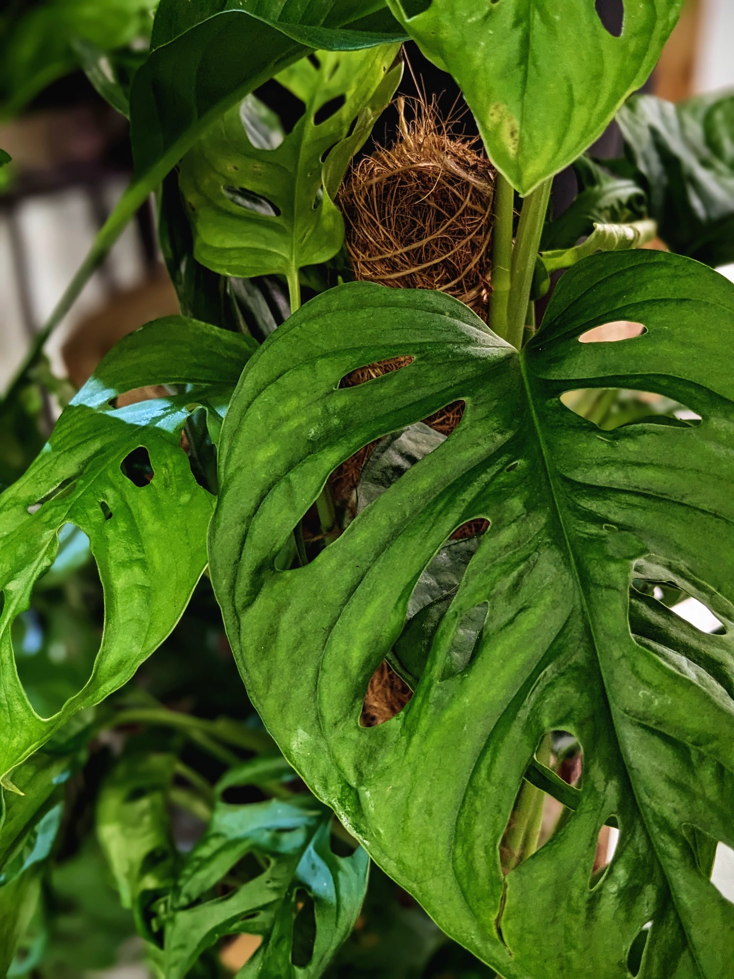 Plant maintenance: Monkey Leaf Monsteras are easy to care for as long as they have moist, warm conditions. They like bright, indirect light, but are hardy enough to tolerate moderate shade. Water, when the soil of your Monkey Leaf Monstera has started to dry-out. Be careful not to overwater as this can lead to root rot. They love an occasional mist.