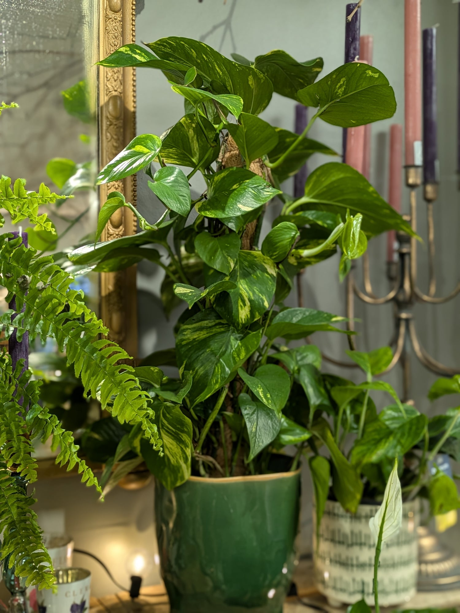 One of the easiest house plant to grow. It's tolerant of all kinds of conditions and neglect. Pothos can be trained up a pole or along wires on a wall.