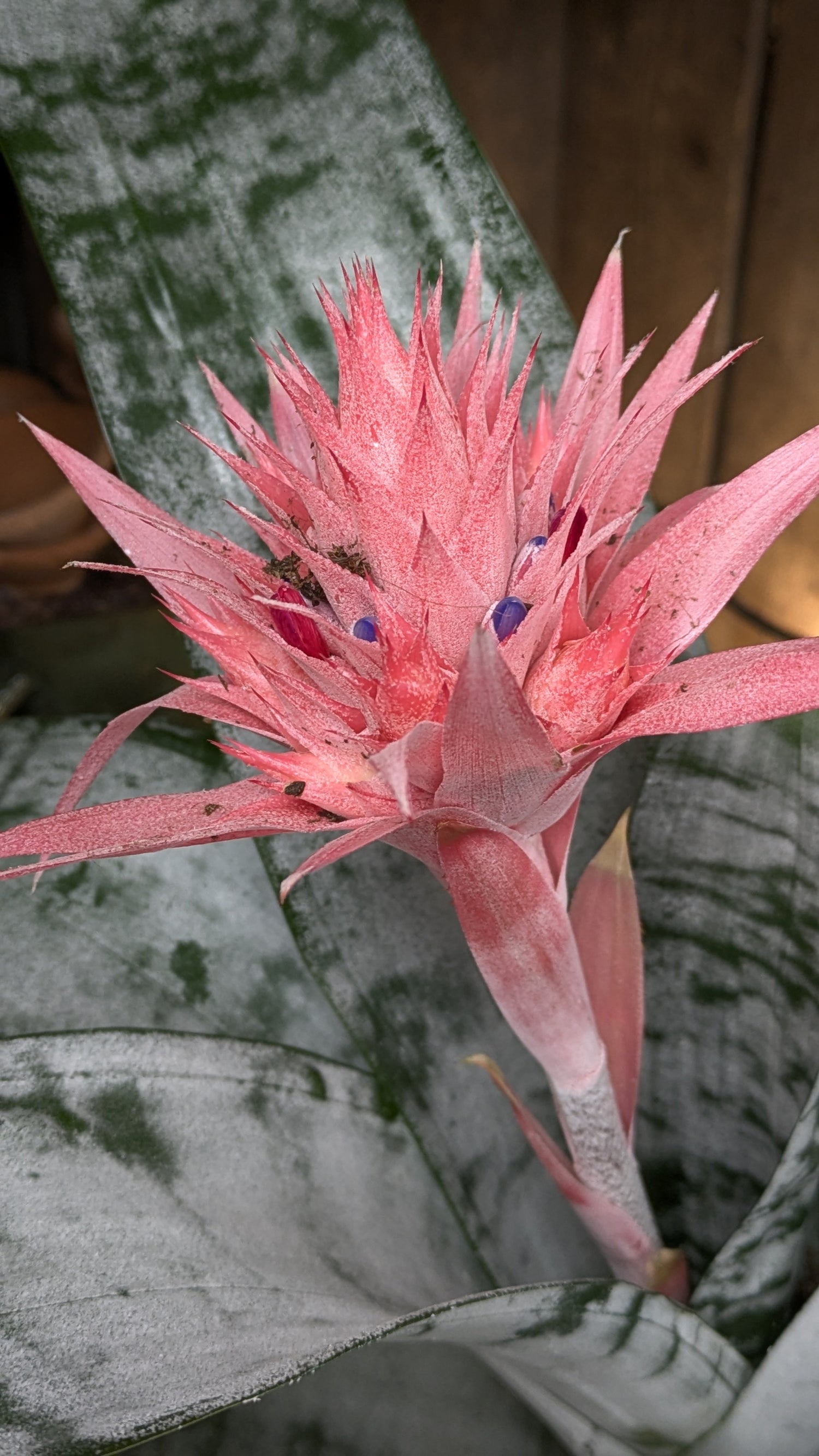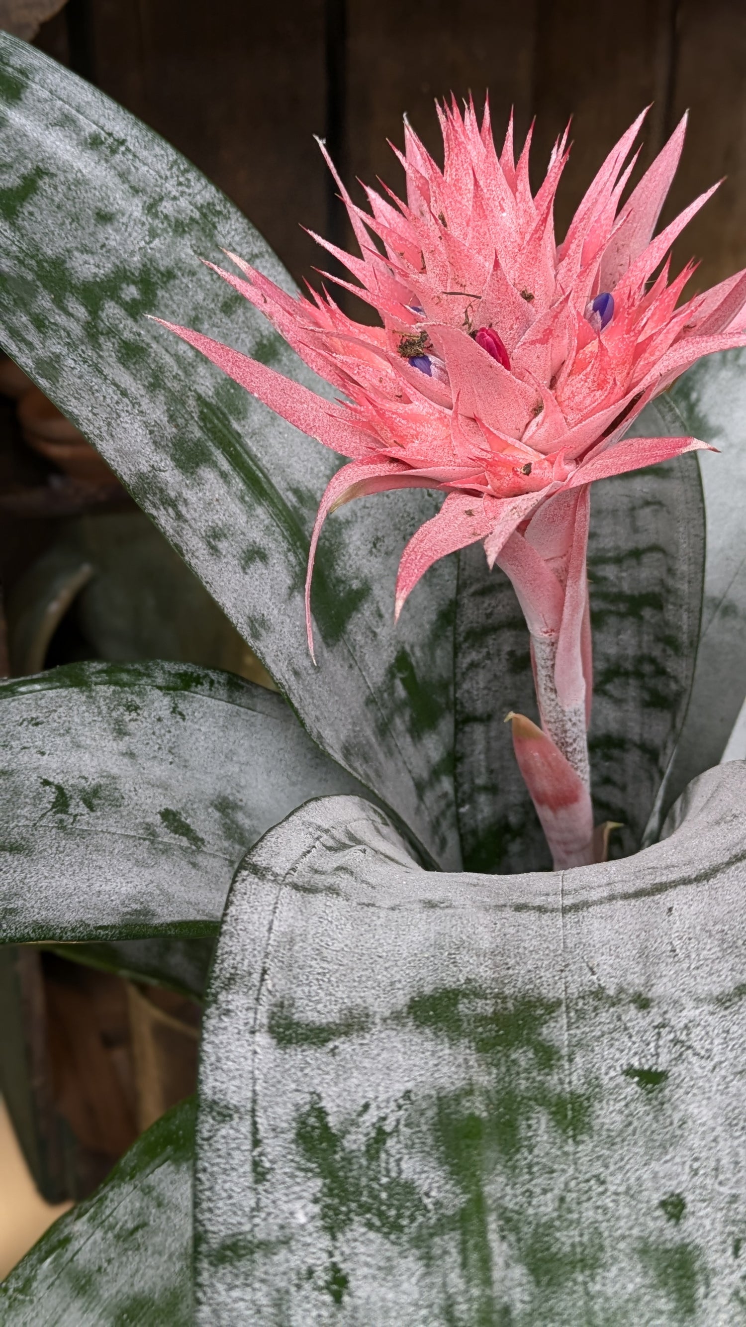 Indulge in the exotic beauty of this Primera plant. This luxurious native of the Brazilian rainforests, boasts broad green leaves adorned with silver-grey markings. Its show-stopping flower spike bursts with pink bracts and small purple flowers. Elevate any space with this intriguing houseplant.